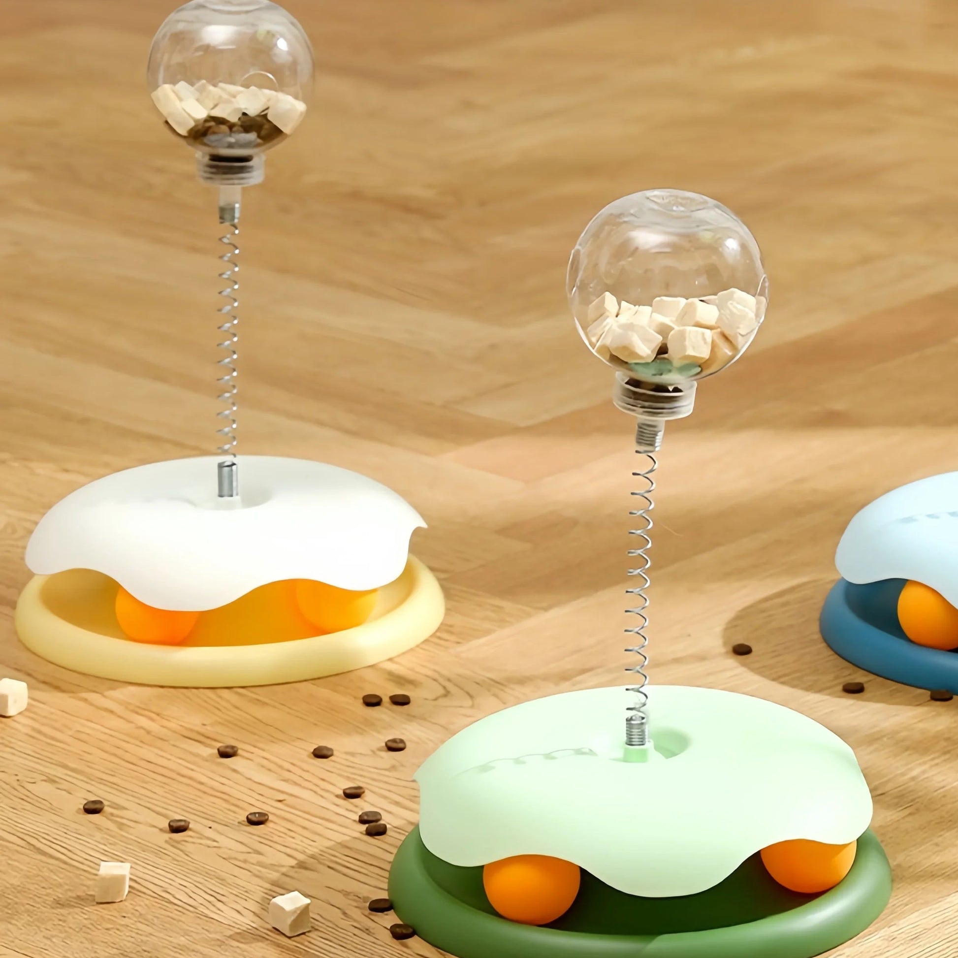 1. This product is a cat play turntable toy, suitable for the entertainment and exercise of indoor cats. This product consists of a cat toy food leaking ball and a cat teasing stick, which helps cats spend their time and energy through interaction and rewards.