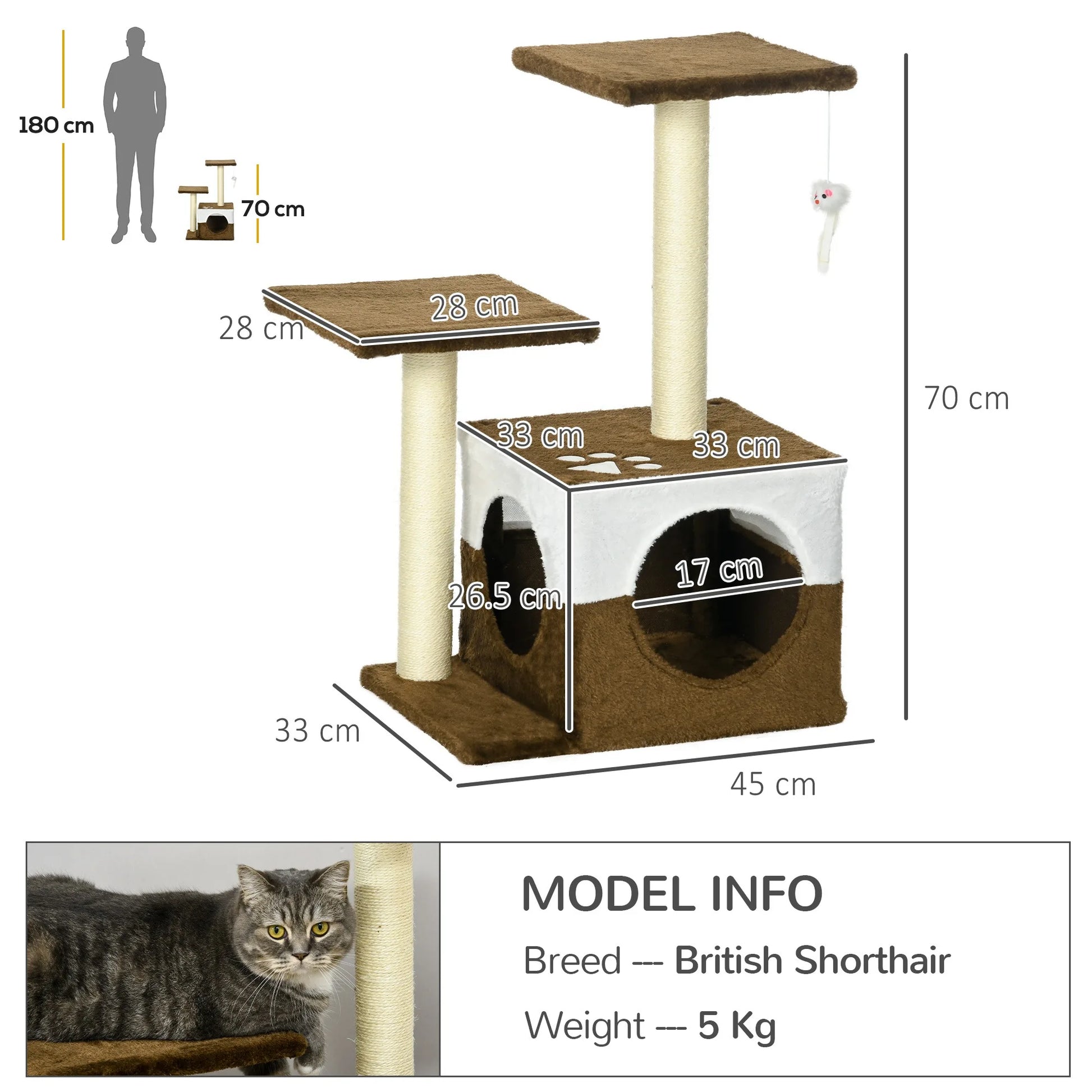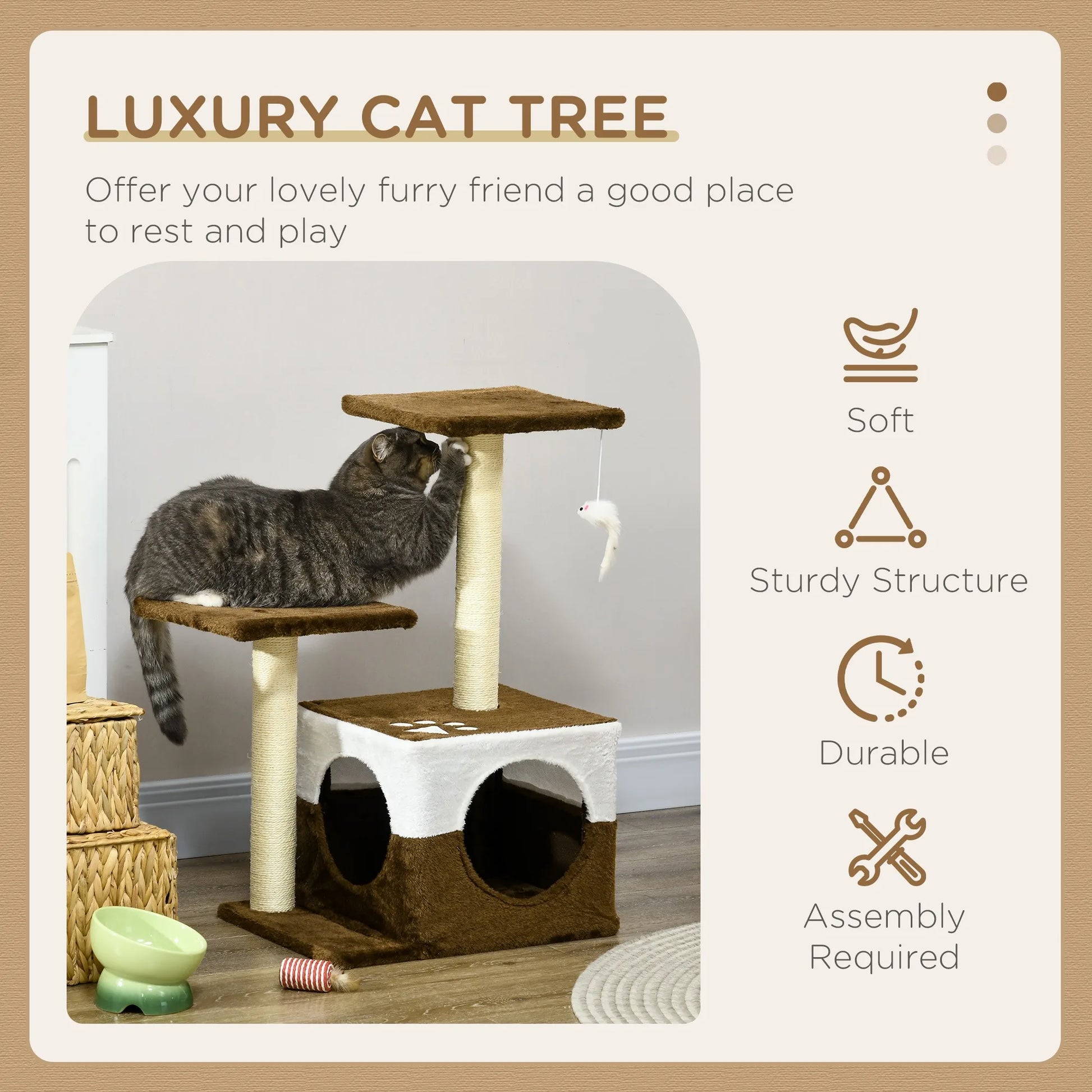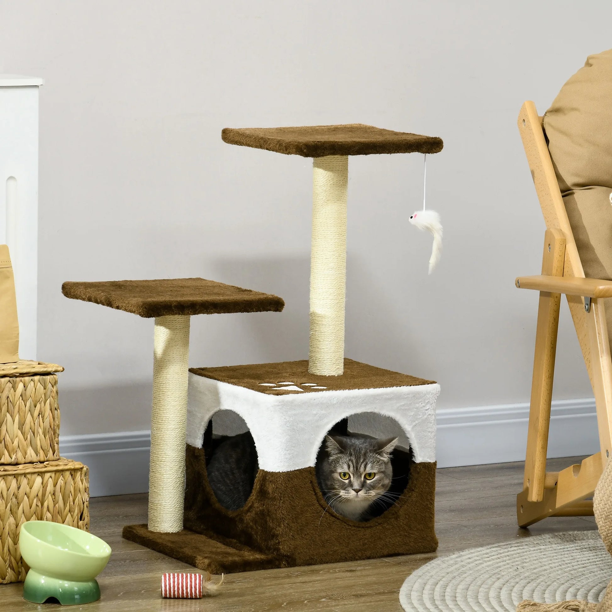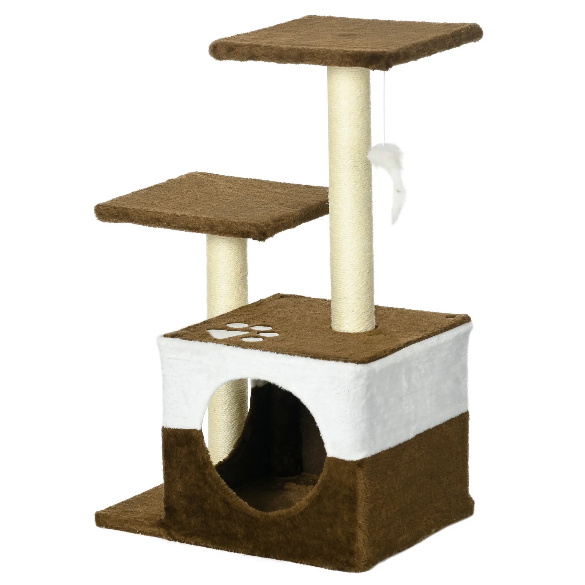 Cats can let loose thanks to this scratching tree. They love to scratch, so we gave them a hemp rope post to scratch on all day long so they don’t scratch the furniture. There’s also a hanging toy to keep them entertained all day long when they’re in a good mood, which is especially useful when they’re alone. They’ll rest on the perches or use their cubby house for privacy. This kitty tree is covered with soft plush fabric to bring comfort to their daily routine.