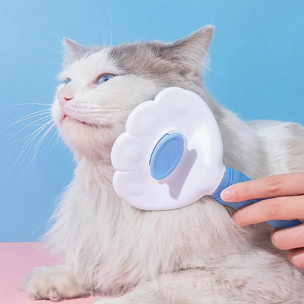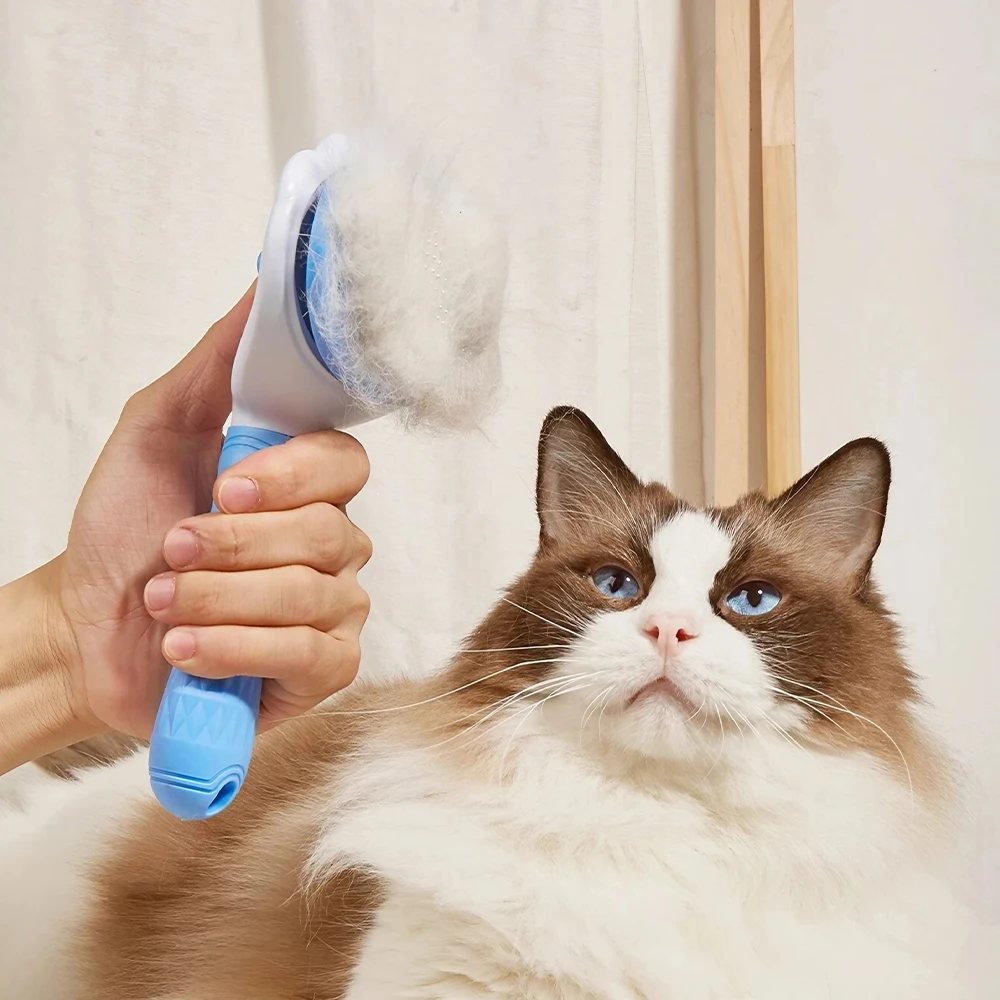 Pet Grooming Brush with Bristle Retraction Button Design